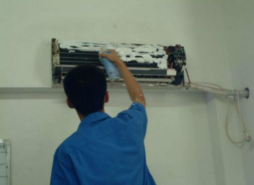 | 东源空调维修师傅给东源用户上门维修清洗空调。 |